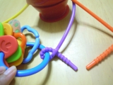 お気に入りのおもちゃや歯固めを3本のストラップで同時に取付けられます。
