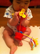 長女(7ヶ月)は、最近ハイハイをするようになって、ますます動きが、激しいです年々子育てグッズや、おもちゃも新しくて、便利だったり、おしゃれな物が沢山ついつい色々欲しくなっちゃいますが、最近の彼女のお気に入りはこちらシリコンで出来ている、アップルの形のおもちゃ真ん中に三本コードがついていて、お気に入り… 2012/08/11