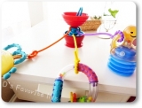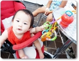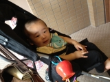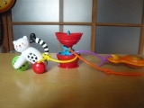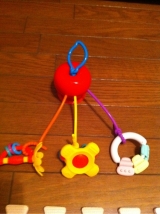 最近、ベビーカーに必ず付けていくおもちゃ(?)があります それがこの真っ赤なりんごさん 株式会社ダッドウェイさんの、その名もGRAPPLE 触手のようなカラフルゴムのひも状のものが3本ついており 好きなおもちゃを合体させてしまう事ができます 葉っぱのところが引っかけられるよ… 2012/08/21