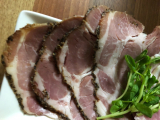 国産豚肩ロース肉に黒粒胡椒をまぶし、香ばしく焼き上げたオリジナルローストポークです。