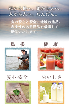だんだんネットショップでは、【島根】【健康】【安心・安全】の3つの視点を基準に商品を厳選し、食の安心と安全、地域の逸品、希少性の高い商品をご提供いたします。