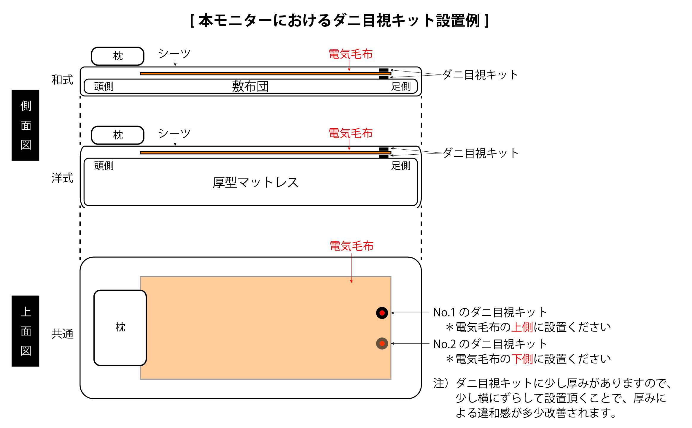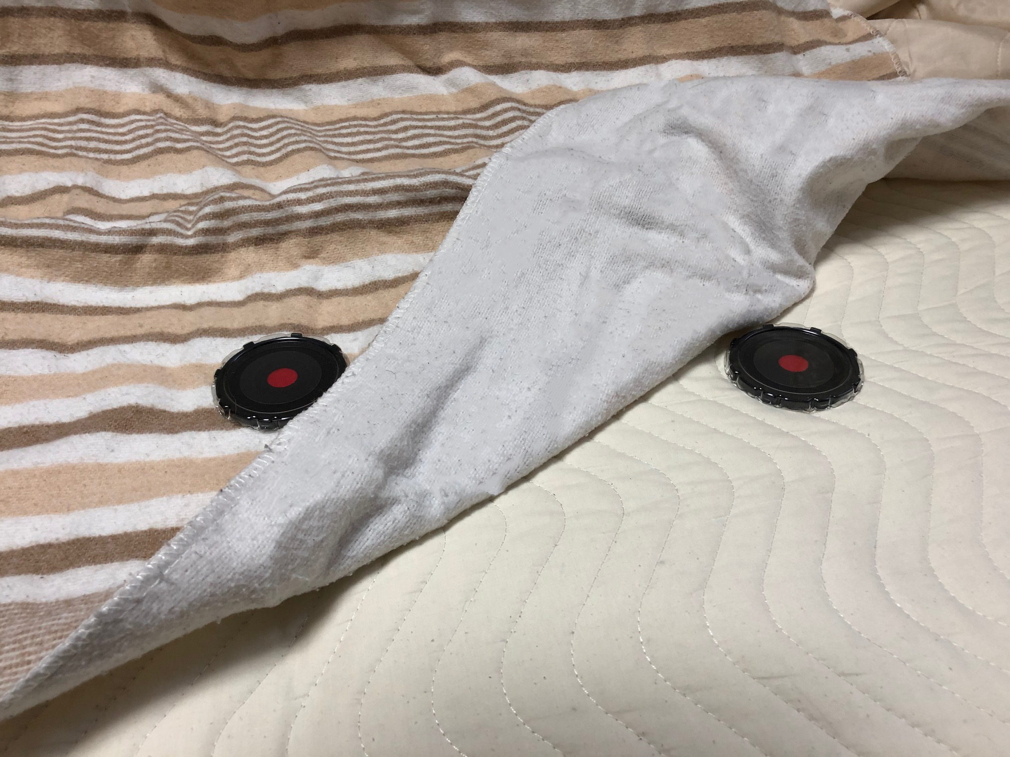 ■ダニ目視キット2個をそれぞれ、電気毛布が設置してある寝具の