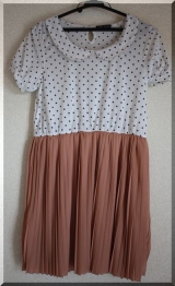 シフォン素材プリーツスカート半袖ドッキングワンピース■モニター3名様こういうワンピースこないだ買ったばっかりなんだけど1着でかわいくなるし、楽だから大好きトップス部分は丸襟でドット柄 これだけでも今の流行だよねスカート部分はシフォン素材で、軽やかな細プリーツ どこに着て行っても大丈夫だねぇ まだ肌… 2012/05/10