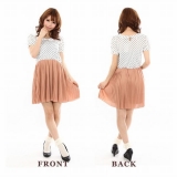 シフォン素材プリーツスカート半袖ドッキングワンピース■モニター3名様こういうワンピースこないだ買ったばっかりなんだけど1着でかわいくなるし、楽だから大好きトップス部分は丸襟でドット柄 これだけでも今の流行だよねスカート部分はシフォン素材で、軽やかな細プリーツ どこに着て行っても大丈夫だねぇ まだ肌… 2012/05/10