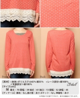 大人気ドット柄♪裾レース付き!!広めUネックトップス■モニター2名様 デイリー使いにはぴったり!! 使いやすくてスタッフ全員買っちゃいました♪ 人気ドット柄からシンプルTOPSが入荷 小ドットと裾には上品なレースで女性度満点◎ 広めUネックだからデコルテ部分を すっきり綺麗に見せてくれるのも… 2012/10/08