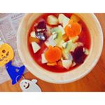 Halloweenデザート♡フルーツポンチ デルモンテのクランベリー&ざくろジュースできれいな赤紫色にできあがり〜 フルーツポンチってかわいくて美味しくて簡単で栄養満点で💯 私も子どもたちも大好きなデザートなの🍎 #デルモンテ #ハロウィン #ヘルシーガーデン #クランベリーざくろ #クランベリー #ざくろ #monipla #delmonte365_fan 2018/10/29