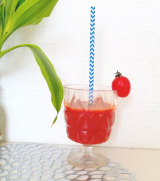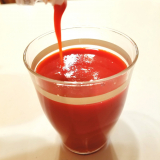 完熟トマトの甘みと旨みを活かした、濃厚な味わいの濃縮トマト飲料です。900gペットボトル1本に、真っ赤に完熟したトマト28個をギュッと濃縮しています。