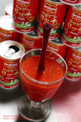 完熟トマトの甘みと旨みを活かした、濃厚な味わいの濃縮トマト飲料です。トマトジュースの1.5倍のリコピンをたっぷり含んでいます。(当社食塩無添加トマトジュース比)