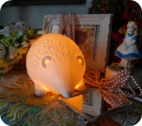 デザイン照明のディクラッセさんから届いた、Aesop table lamp(イソップ テーブル ランプ) ハリネズミのハンス君を使っていますハリネズミはハリネズミでも威嚇していないバージョンなので刺々していません動物をかたどっていても陶器でできているので、大人の部屋に置いてあっても違和感がない… 2013/05/17