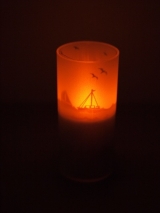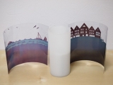 LEDキャンドルに、世界の街の景色が浮かび上がる