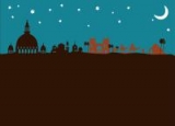 エキゾチックな宮殿と、輝く星空の下を行くキャラバンが、 砂漠のオアシスで出会います。 ※画像をクリックすると拡大します。 |