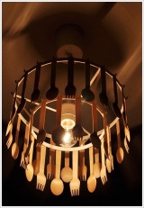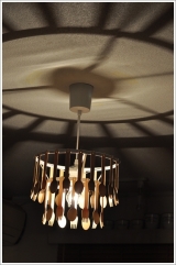 モ二プラさんで応募していたユニークな影を演出するペンダントライトジータが届きました(^^)vナチュラルな木製のフォークとスプーンを吊り下げます^m^ダイニングの照明を 2013/07/31