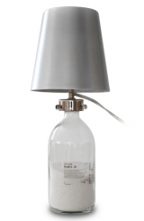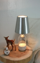 棄てられるはずだったボトルを再利用したテーブルランプ。