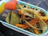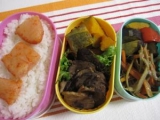 > 明日のお弁当です♪ごはん+明太子(300g)豚肉の紅茶煮(脂身が多かったため、少し焼きました)お芋のマリネかぼちゃのマリネきんぴらごぼう『おかず?』 『おかず?』 ごはんに乗っていると明太子は、モニターさ… 2011/01/17