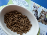 にゃんこちゃんって、箱とか袋があると、どうして入っちゃうんだろ。( ´艸`)こんな美海さんだけど、我が家では一番グルメじゃないかと思われる。ホントに気に入ったキャットフードしか食べない。私達が食事していても知らん振りで、「人間の食べてる魚なんていらにゃい~ヾ( ^-x-^)」って感じで、何にも欲しがったりしない。だからこそ、いい物を選んであげたい。「無添加キャットフード安心」は、猫の栄養理論に基づいて作った安心安全な健康無添加キャットフード。400g 税込1,680円人が食べれる食肉用の多種の生肉を使っていて、その種類は牛・豚・鶏・馬・魚・牛レバーとホントにたくさん。偏った一種類の動物性タンパク質を食べ続けるとアレルギーが出ることもあるようなので、これだと最初から色々な種類が入っていて安心。さらに、通常キャットフードのように短時間高温加工で動物性タンパク質が劣化してしまうのを避けるため、10時間以上かけて70度以下の低温乾燥しているそう。そして抗菌剤も無添加。穀物の20%を生の状態から低温処理する事によって、腸内の善玉菌を増やして腸本来の機能を正常にしてくれるのだとか。なんだかとっても体に良さそう!!でも食べてくれないことにはどうしようもないからな、と、袋を開けた瞬間、「みゃ〜〜〜あお♪」と擦り寄ってきた美海さん。(*゜д゜*)そしてお皿に移すやいなや、はぐはぐはぐ。めちゃ美味しそうに食べてるー♪ヽ( ´¬`)ノこの「無添加キャットフード安心」、給仕量は一般キャットフードの半分以下でOKだそう。理想的な栄養バランスなので、少量でいいんだって。お値段はちょっと高めかな、と思ったけど、半分と考えるとそれほどでもないかも。美海さんは元々たくさん食べる方じゃないので、少しでバランス良く栄養分が摂れるというのはすごく惹かれる。これからも買ってみよ♪ドッグキャットフードの無添加安心本舗 ドッグフード無添加安心本舗