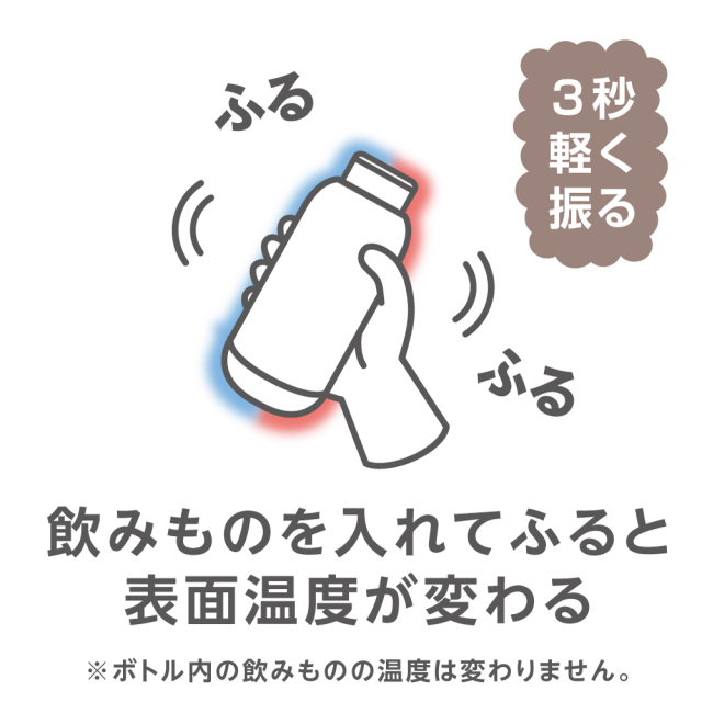 熱伝導剤により、飲み物の温度をボトル表面に伝えることができるため