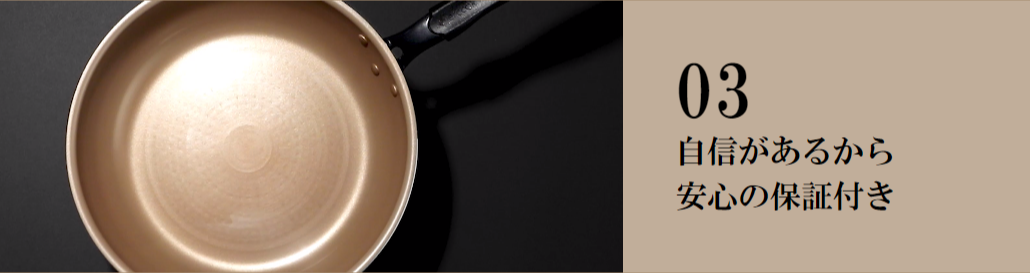 フライパンのフッ素コーティングに自身があり、保証をつけたフライパンです。