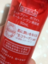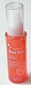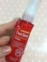 Dot free(ドットフリー)ホワイト オールインワン美容液赤いボトルが可愛いよく見るとコラーゲンのツブツブが入っています中身はこんな感じで、透明のジェルですこちらは洗顔後にこれ1本で、「化粧水美容液乳液クリーム・ケア」の役割を果たしてくれる優れものメラニンの生成を抑え、しみそばかすを防ぐ… 2014/08/10