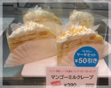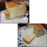 | ●リキッド アイスコーヒー ネルドリップ方式でじっくり抽出した自信作。 香り高く、深い、それでいてすっきりとしたクリアな後味。 氷を入れても負けない存在感でコーヒー本来のおいしさをお楽しみいただけるアイスコーヒーです。 ●ケーキ「ミルクレープ」 表面のキャラメリゼの「苦み」と「香ばしさ」がおいしさのアクセント。 歯切れよく、なめらかに口の中でとろけるおいしさです。 甘さをおさえたクリームをふんわり重ねたやさしい仕上がり。 | ||