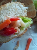 ドトールコーヒーショップの 『ミラノサンド 彩り野菜とチキンのバーニャカウダソース』を食べてきました! 人参、カリフラワー、プチトマト、パプリカ(赤黄)、大根、人参、レタスの7種類の野菜に、 ローストチキンを加え、人気のバーニャカウダソースで仕上げました シャキシャキ、さわやか この季節にう… 2013/08/16