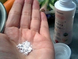 ①2リットルのお水に「安全野菜のもと」をひとふり~ふたふり入れ、溶かします。