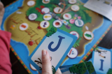 ボードに小文字タイルをセットして大文字アルファベットカードを1枚めくります。