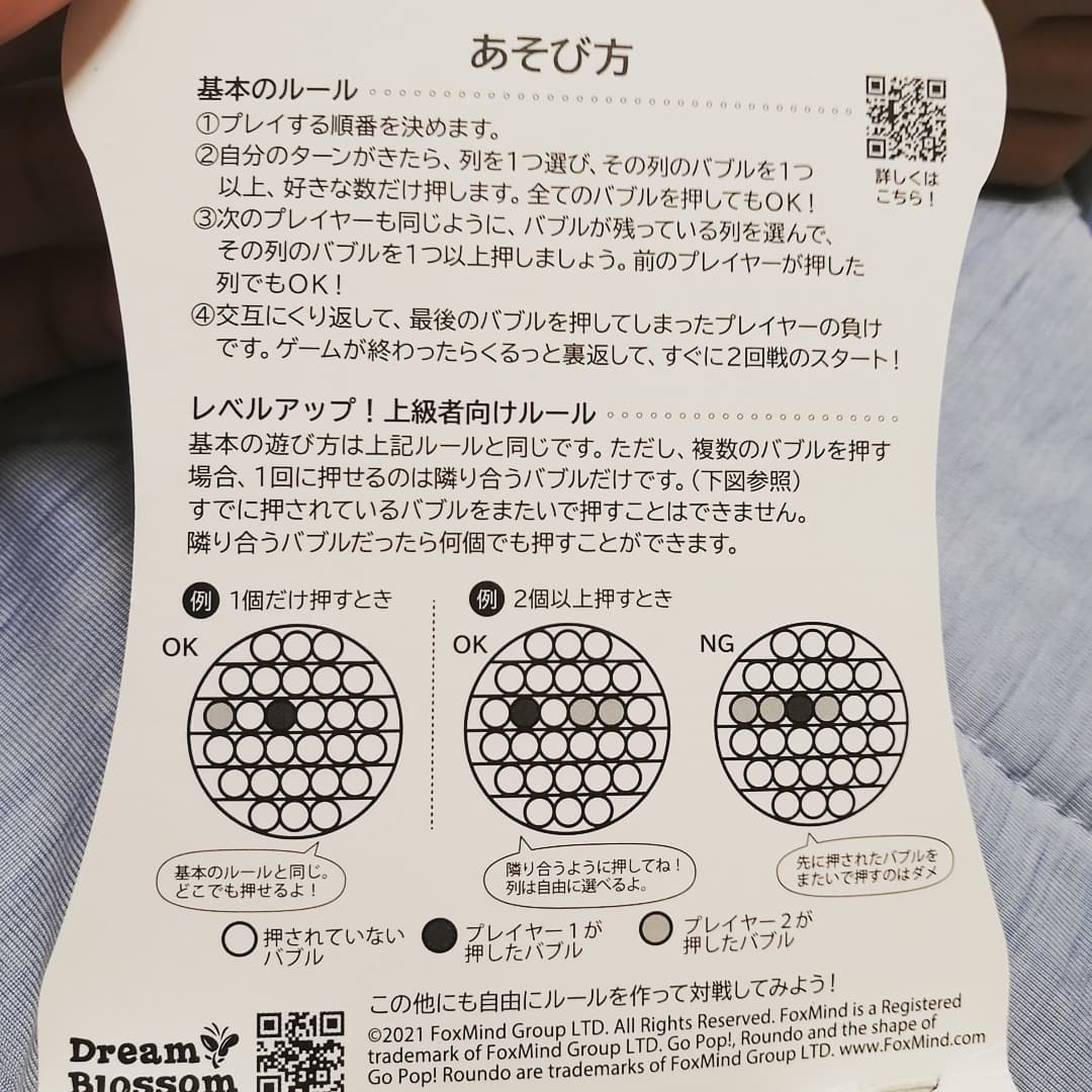 . アメリカで大人気のバブルPOPゲーム! Go Pop! このポコポコが癖になる!! 二人でポコポコ、ストレス発散。 遊び方は簡単!基本のルールはこちら。 1 プレイする順番を決めます。 2 自分のターンがきたら、列を1つ選び、その列のバブルを1つ以上、好きな数だけ押します。 すべてのバブルを押してもOK! 3 次のプレイヤーも同じように、バブルが残っている列を選んで、その列のバブルを1つ以上押しましょう。 前のプレイヤーが押した列でもOK! 4 交互に繰り返し、最後のバブルを押してしまったプレイヤーの負け。 ほかにも自分たちで自由にルールを作って遊べます◎ シリコン製で洗えるから清潔に遊べるのも嬉しい!! 我が家では寝る前にベッドで勝負するのが定番に(^-^)/ 夏休み、みんなでポコポコしませんか? #GoPop #ゴーポップ #フィジェットトイ #ストレス発散 #シリコンおもちゃ #monipla #dreamblossom_fan