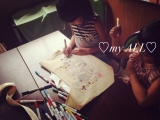 よっしゃー‼︎娘(年長)早々と寝ましたー‼︎٩(๑‾ ꇴ ‾๑)۶(笑)続き♡ローカルですが(笑)焼山のナリポのピッツア•フリッタみんなで食べると美味しいね(⌯˃̶᷄ ⁻̫ ˂̶᷄⌯)♡トートバックに色ぬりしたり500円で少女漫画風に似顔絵描いてもらったり♡出来上がりまだもらってないけんもらったら… 2015/08/30