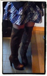 久々にヒールのブーツをgetしました 夢展望の英国風レースアップニーハイブーツです 上質なヴィンテージ調素材×スエード調素材 幅広甲高23235cmを履いている私はMサイズ おそらく若干大きめ?タイツでも若干余裕がありました テレビでも活躍しているPopteenモデルくみっ… 2012/01/23