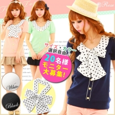 夏にぴったりな涼しげトップスいただきました 半袖で白だけど透けない素材ヾ(@°▽°@)ノ カラーバリエーションも豊富 リボンがついているので いろいろなコーデに変身出来ちゃいます 私はネクタイ風に使うのがスキかも お値段もお手頃なんで … 2012/06/21