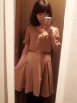 Goooodmorning;)夢展望さんからポンチフレアワンピの紹介です♡細ベルト付で 女らしく魅せる両V開きと細腕効果のあるロールアップ袖がポイント♡生地もしっかりしていますよ♬(^^)/色は4色あってこちらはキャメルです(^^)♬スカートのAラインも綺麗♡気になった方は夢展望でgetできる… 2013/06/08