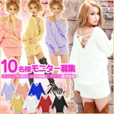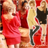 Sexy両Vネック開きざっくり裾ピタドルマンニットワンピ♪