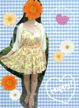 送り盆から帰ってきて、一息ついてから… こんな格好に着替えてお出かけしています♪ ワンピース&ベルトは、実はセットもの …というよりも、こちらのワンピ&ベルトに、パーカーがついたセットなのです♪ そのパーカーだけ、別の手持ちのグリーンのカーデに変えてみたのです … 2013/08/16