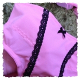 CUTEなひらひらフリルで油断させて、実はサイド&背中スッキリを狙うパワーネット使用の脇高タイプ♪