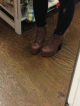 ┳┳┳┳┳╋╋╋12cmヒールレース╋╋アップショートブーツ╋╋╋ 夢展望┻┻¥3465試させていただきましたあ見てーこの分厚さなんと12cmあります旦那の身長より高くなりますー♡♡♡ヒールが高いと、ショッピングにはちょっとシ… 2014/03/09