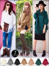 裾フリンジ飾りがオシャレなポンチョトップス。
