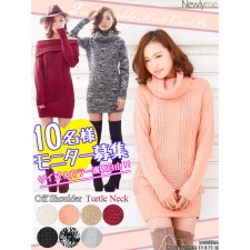 タートルorオフタートルの2WAYシンプルケーブル編みニットワンピース。