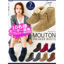 フロントレースアップディテールでカジュアルに仕上げたスニーカー風ムートンブーツ。