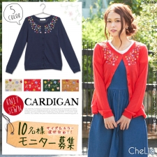 [花刺繍入りニットソーカディガン]