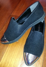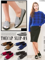 今季トレンドのメタルトゥキャップをつま先に飾ったCOOLなスリッポンスニーカー。