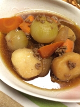 我が家の肉じゃが(^^)実家の肉じゃがは、牛肉でもなく、豚肉の肉じゃがが基本(社会に出てから牛肉の肉じゃがを知りました…だって給食も豚肉だったから(´・_・`))しかもひき肉にしてそぼろ風にご飯に乗せて食 2014/11/30