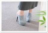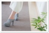 ミュールタイプで脱ぎ穿き簡単な12cmヒール美脚サボパンプス。