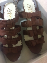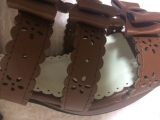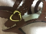 リボンがたくさんのすっごくラブリーなサンダルを送って頂きました♪ヒールが太く、安定感があるので、最近スニーカーばかりの私でも大丈夫!ストラップの留め具がハート❤︎リボン4連、フリフリ、お花型模様とかなりラブリーな要素たっぷりサンダルなのですが、カラーが濃いブラウンなので甘くなり過ぎないかなと思い… 2015/07/04