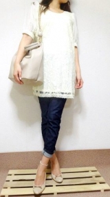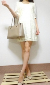 夢展望のレースのワンピース普段からレース系は好きで買うんですが、ラベンダー色も初めて! タイトめとありますが、フレアのようなストンとしたデザインなので気にせず着られます(^^)♪ 2015/07/25