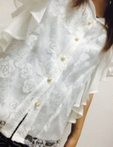 身頃全体のバラ柄レースがレトロで可愛いフリルブラウス。