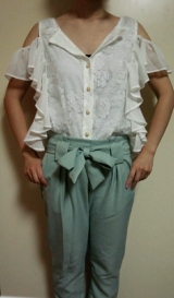 オフショルはゴム入り、