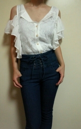 オフショル部分はゴムになっているので、程よく二の腕にフィットします。
