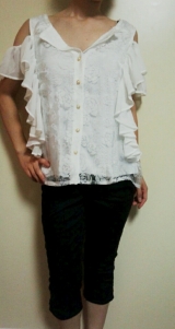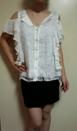 [バラ柄シフォン肩あきブラウス]