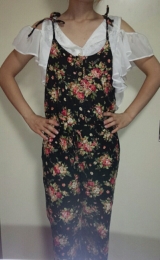 身頃全体のバラ柄レースが