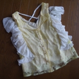 身頃全体のバラ柄レースがレトロで可愛いフリルブラウス。